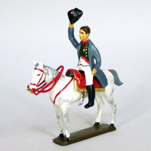 Napoléon 1er (1769-1821) levant son bicorne, sur cheval debout