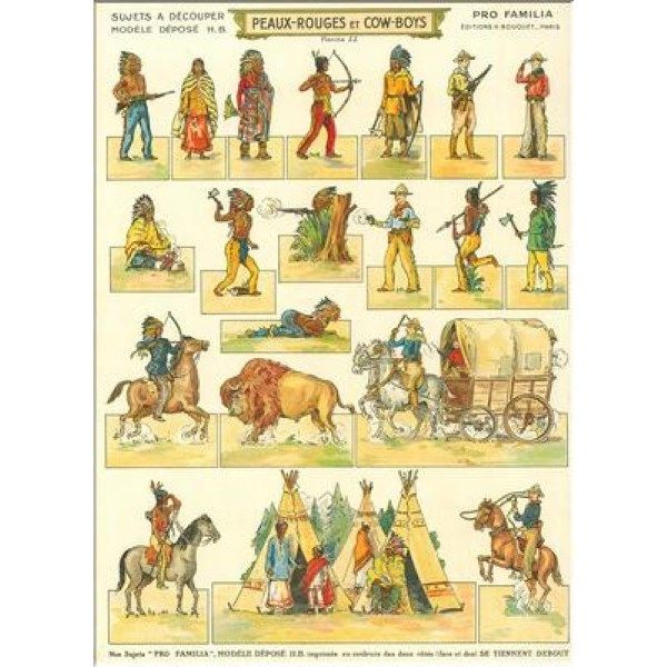 planche à découper : Peaux-rouges et Cow-boys (reproduction)