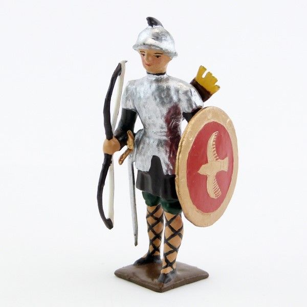 Figurine de collection au 1/35e, en alliage de plomb et d'étain, peinte à la main représentant un franc avec arc, cotte argent