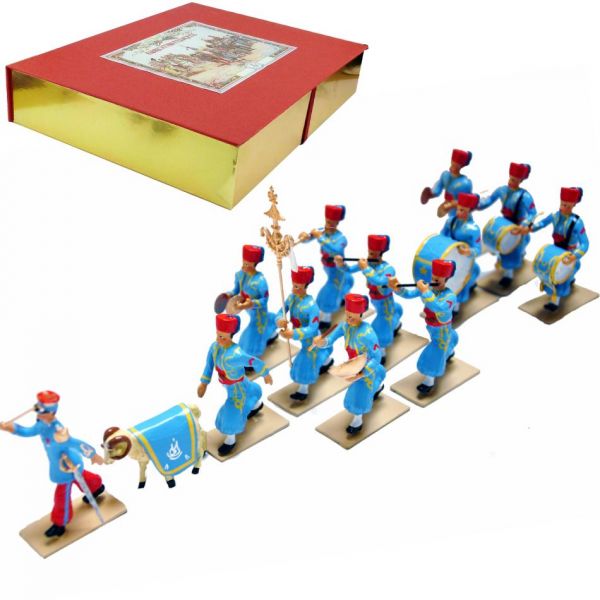 Nouba des Turcos, coffret de 13 figurines (1 Chef, 1 Bélier, 1 Turcos, 1 Chapeau-chinois, 1 Tambour, 1 Trompette, 2 Cymbaliers, 2 Flûtes, 3 Grosses caisses)