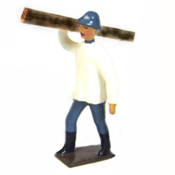 Sapeur du génie, bourgeron et pantalon B.H., transportant poutre