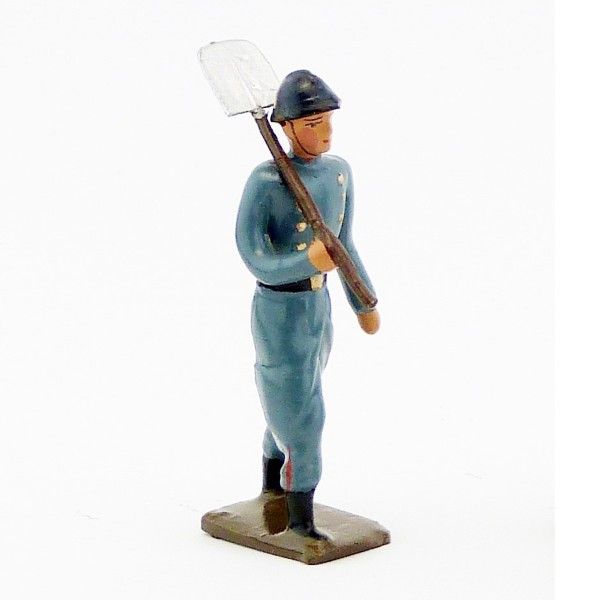 Sapeur du génie (sapeur télégraphiste), capote B.H., avec pelle sur l'épaule