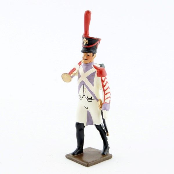 Figurine de collection au 1/35e, en alliage de plomb et d'étain, peinte à la main, représentant un clairon (d'ordonnance) des voltigeurs du 33ème de ligne (1806)